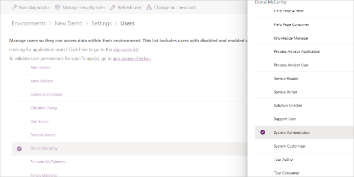 - System Administrator role in the installation environment. The System Administrator security role only gives the user administrator rights in the environment in which it is assigned. It does not grant administrator rights to anywhere outside of the environment.