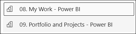 Along the bottom of Power BI Dashboard screens are tabs for additional report focus options - below is an example from the Portfolio and Projects - Power BI Dashboard: